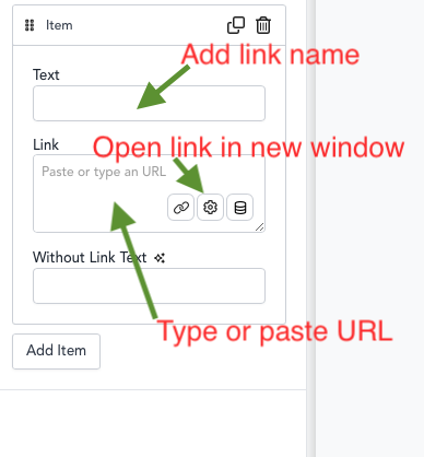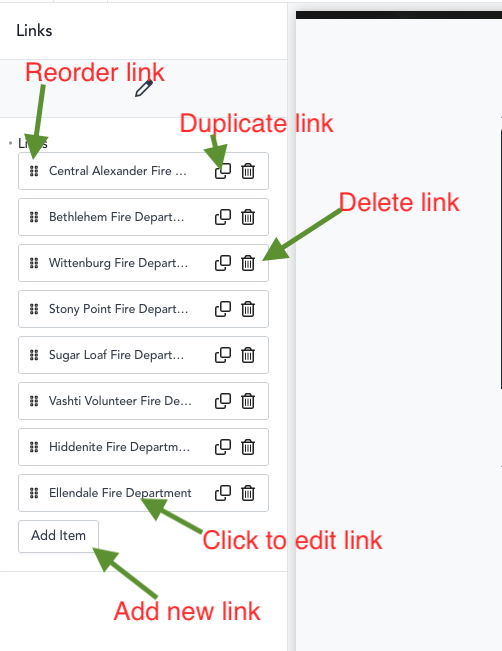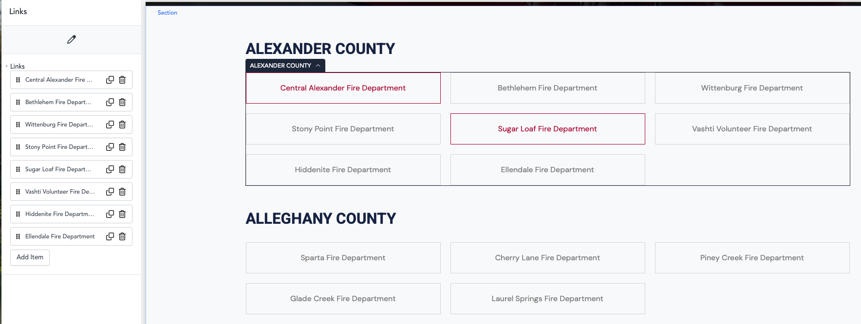3. Click the section of links you would like to edit and a menu will appear on the left.